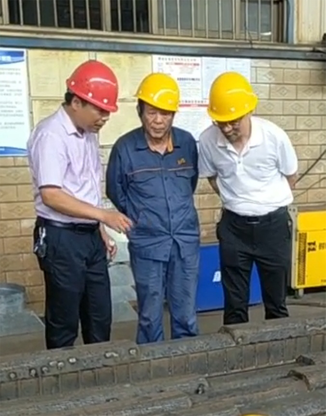 2021年7月15日,公司再次邀請(qǐng)建黨100周年“七一勛章”獲得者艾愛國(guó)來我公司,就埋弧燒焊的焊嘴角度,電流電壓的匹配、滾子的轉(zhuǎn)速等技術(shù)難題,對(duì)我公司青年技師進(jìn)行技術(shù)指導(dǎo),公司總經(jīng)理劉美林全程陪同。