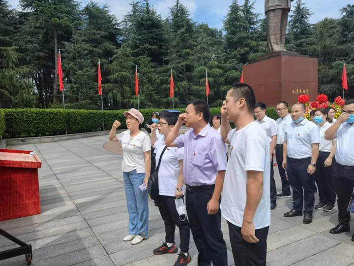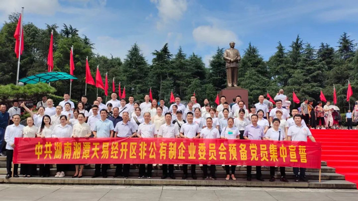 為進(jìn)一步引導(dǎo)全體黨員、干部賡續(xù)革命傳統(tǒng),傳承紅色基因,6月23日,湘潭縣天易經(jīng)開區(qū)非公黨委組織示范區(qū)企業(yè)黨支部書記,帶領(lǐng)示范區(qū)預(yù)備黨員58人前往韶山集中宣誓。實地參觀毛澤東銅像廣場、毛澤東同志故居、毛澤東同志紀(jì)念館,組織全體黨員到韶山觀看《最憶韶山?jīng)_》紅色演出。湘冶黨支部書記曾霞,預(yù)備黨員劉美林、張敏、張亮等三名同志全程參加了此次活動。