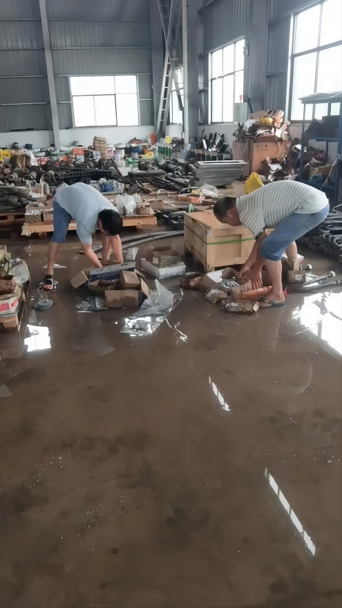 黨員張忠是在清晨六點(diǎn)多就奔赴車間前線,指揮員工譚正武迅速吊起8米立車,并與門衛(wèi)值班人員黃永輝一起搶救倉(cāng)庫(kù)物資。7點(diǎn)后,干部們冒雨陸續(xù)趕往車間搬運(yùn)物資,加固設(shè)備,確保生產(chǎn)線關(guān)鍵節(jié)點(diǎn)的安全。盡管衣服濕透,汗水混著雨水滴落,卻不敢有絲毫松懈,隨時(shí)備戰(zhàn)應(yīng)急響應(yīng)。