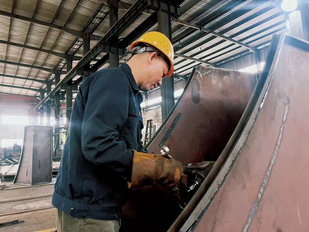楊襲曾是泰富重工的“一周一打卡”自由職業(yè)者。在行業(yè)寒冬的沖擊下,泰富為了降低成本,不得不采取靈活的用工模式,楊襲在外出尋找工作的過程中,機(jī)緣巧合之下,最終加入了湘冶。盡管他的身份是勞務(wù)關(guān)系,但這從未限制他的擔(dān)當(dāng)。他憑借精湛的鉚焊技術(shù),成立了這個(gè)充滿活力的班組。在越南滾軸篩項(xiàng)目中,楊襲憑借其過硬的鉚焊技術(shù),解決了精密焊接中的難題,通過精準(zhǔn)的電流參數(shù)設(shè)置和獨(dú)特的鉚焊手法,確保了鉚焊質(zhì)量,為項(xiàng)目的順利交付立下汗馬功勞。他不僅技術(shù)過硬,而且工作態(tài)度認(rèn)真負(fù)責(zé),為班組奠定了堅(jiān)實(shí)的基礎(chǔ)。盡管他并非全職員工,但他對工作的投入和專注,讓他在車間里贏得了極高的聲譽(yù)。他深知,只有以身作則,才能帶領(lǐng)班組走向成功。他用自己的行動(dòng)詮釋著什么是敬業(yè)精神,什么是團(tuán)隊(duì)的凝聚力。